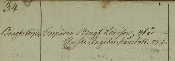 1815. Torparen Bengt Larsson, 46 år. Hustru. Ingeborg Månsdotter 55 år.