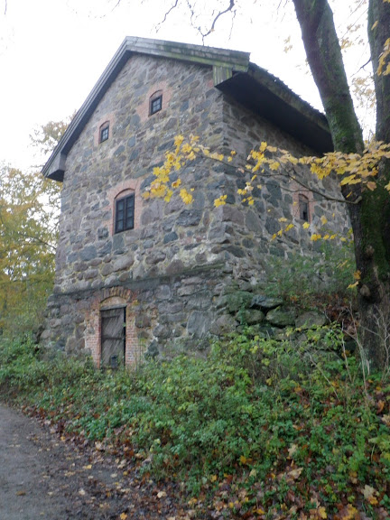”Sedan man korsat gårdsplanen mellan ladugården som nu hyser ett flertal ponnyhästar och den mindre stallbyggnaden där förr herrskapets ridhästar och fina promenadvagnar stod står man inför en fästningsliknande magasinsbyggnad.