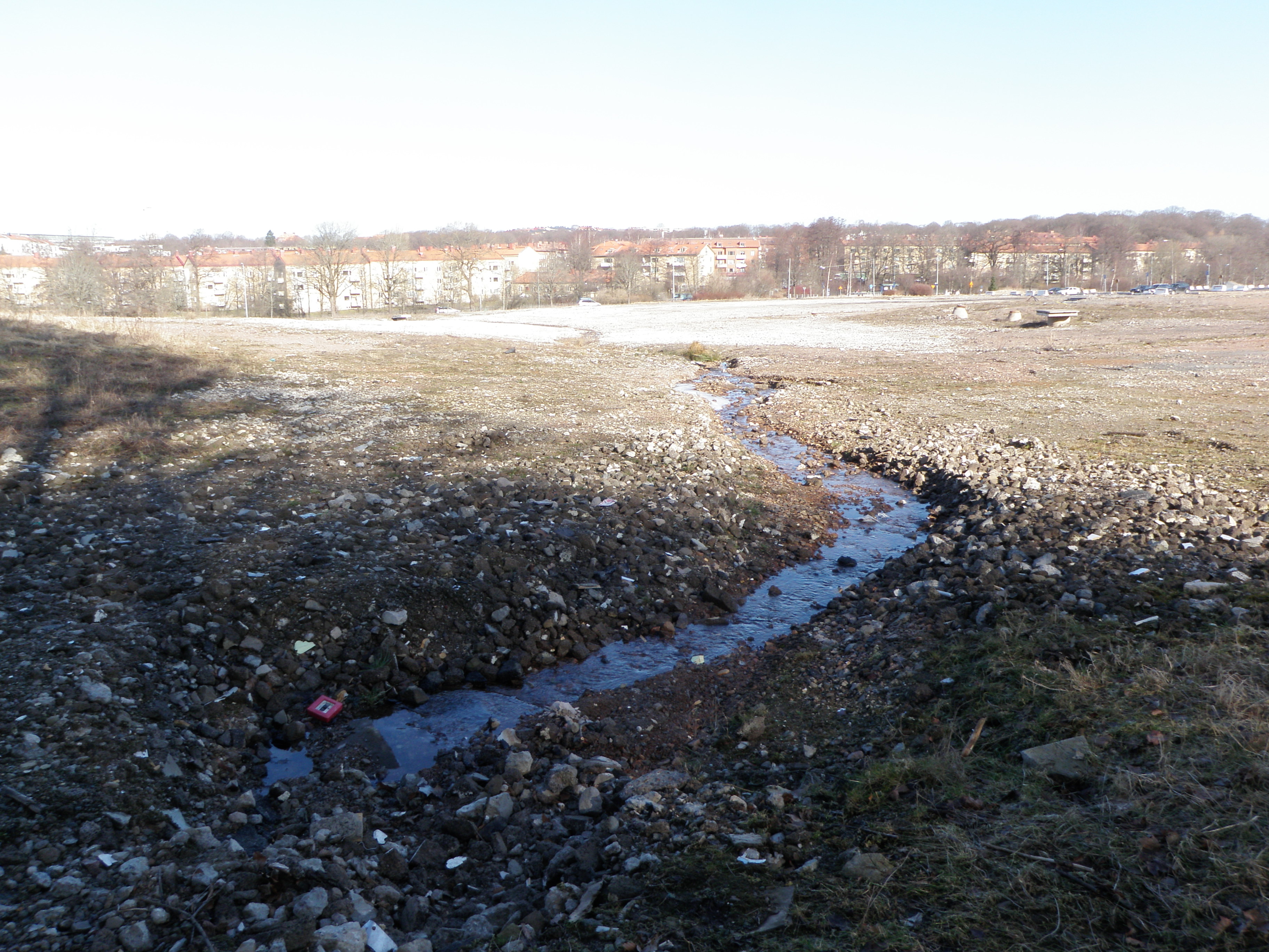 En liten rännil av vatten söker sig idag ned mot Delsjöbäcken igen, även om den inte når riktigt hela vägen fram.