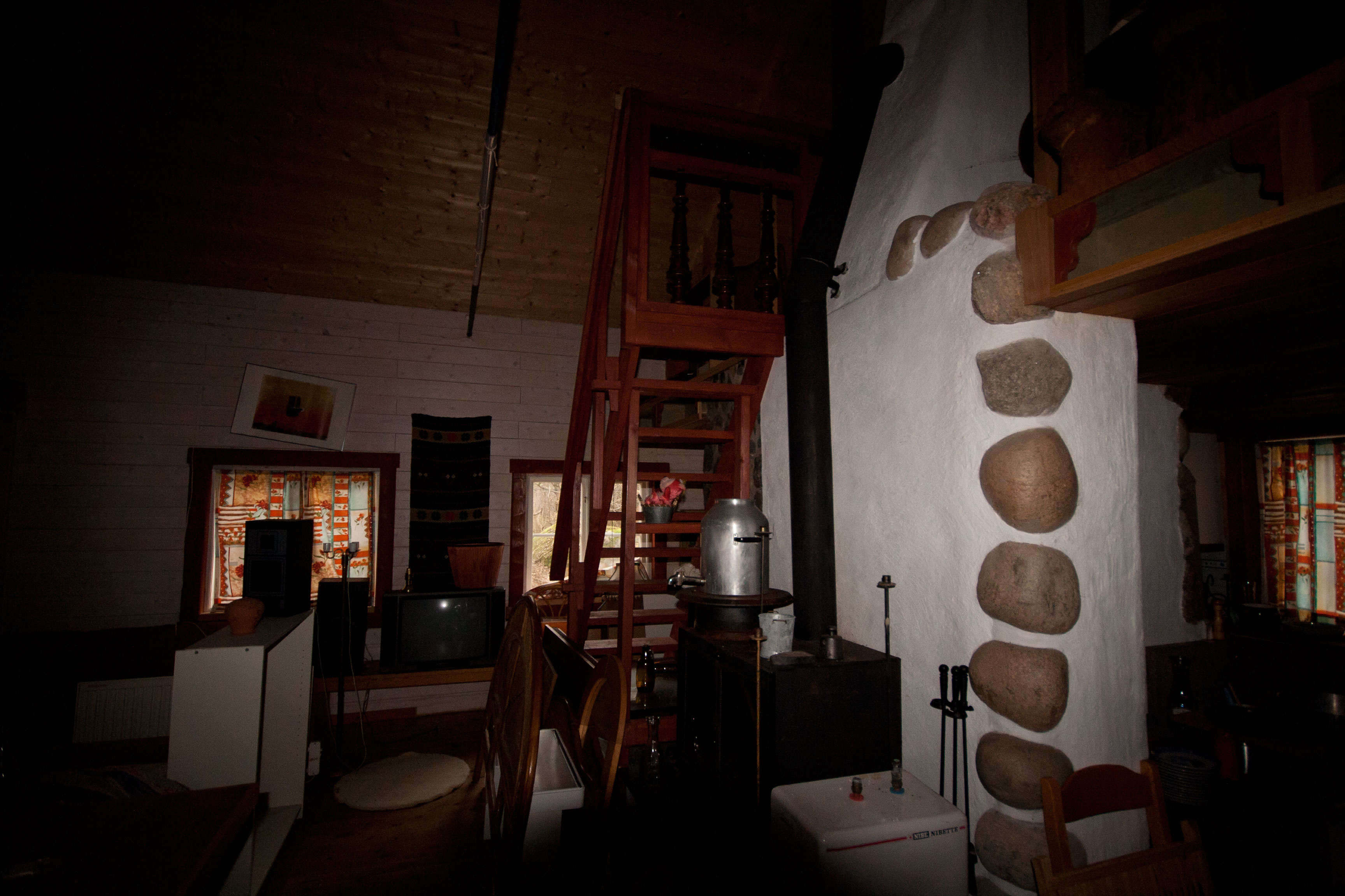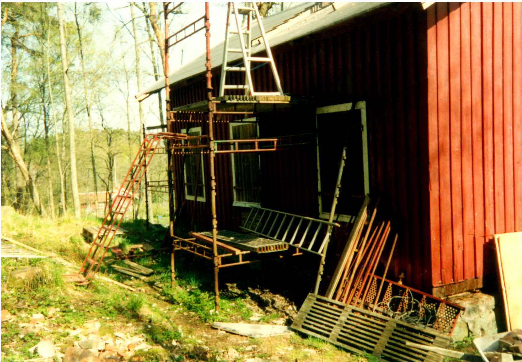 Uppe på det lilla loftet hade tegelstenar lagrats, förmodligen var det ren tur att inte golvet där gav vika och begravde allt och alla i det undre planet under den tid scouterna höll till i huset. Det mesta invändigt fick bytas ut.