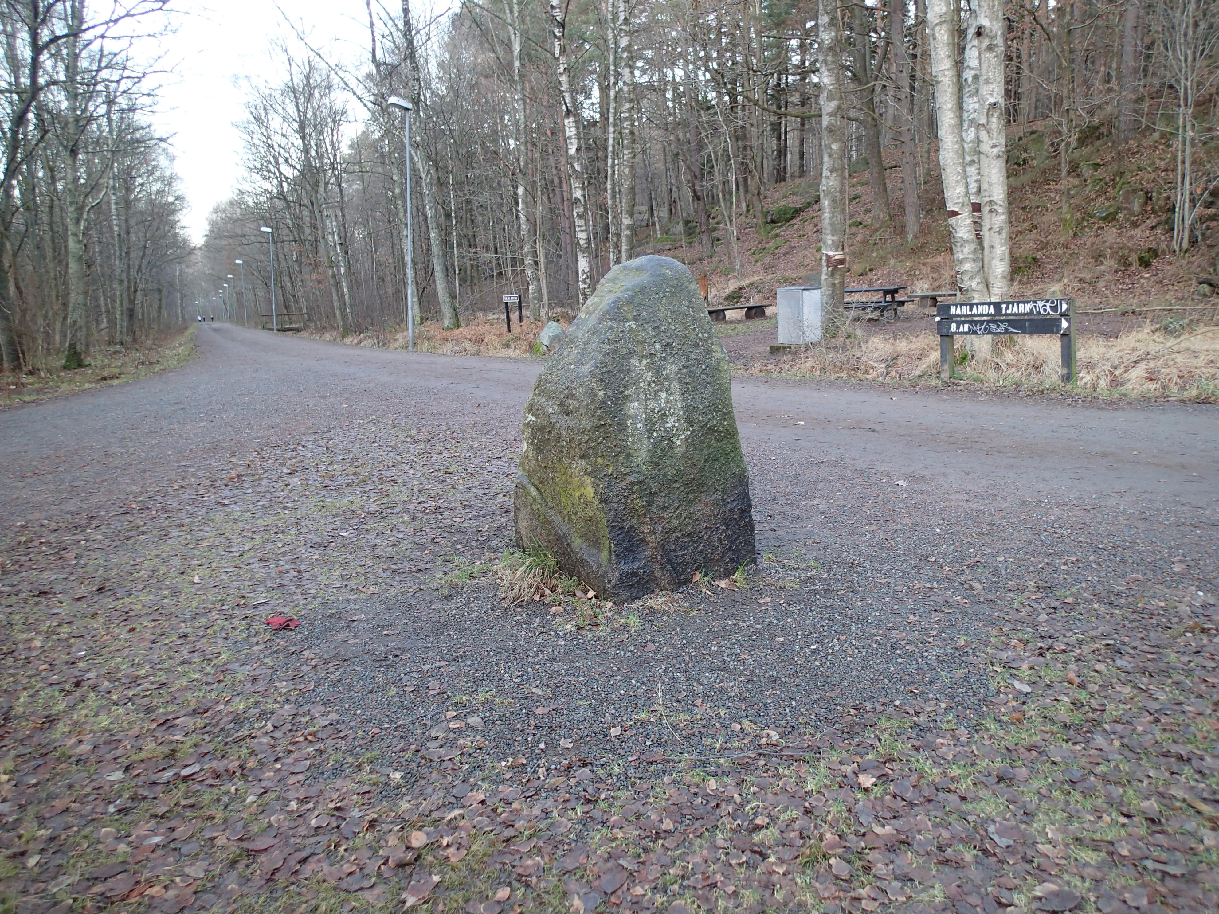Där Härlanda skogsväg möter Skålmekärrsvägen står en sten rest, den brukar tjäna som mötespunkt för många som skall ut och motionera i området. Det är nog få som känner till varför stenen står där!