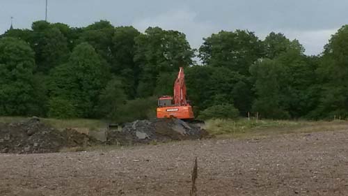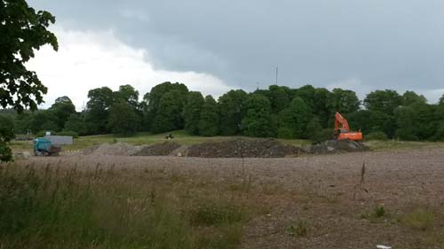 Idag var grävmaskiner och lastbilar i arbete vid Stora Torp. Möjligen är det anläggandet av vägar i området som nu har inletts. Jag fångade denna första aktivitet med mobilkameran när jag idag passerade området.