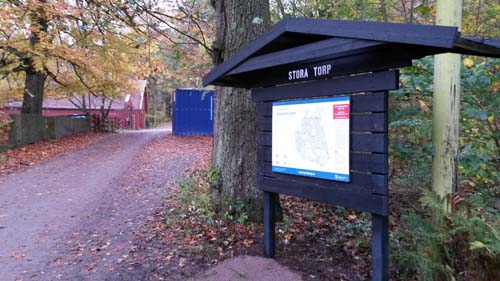 Välkommen till Delsjöområdet, hälsar skylten, men informerar också om nödnumret 112!
