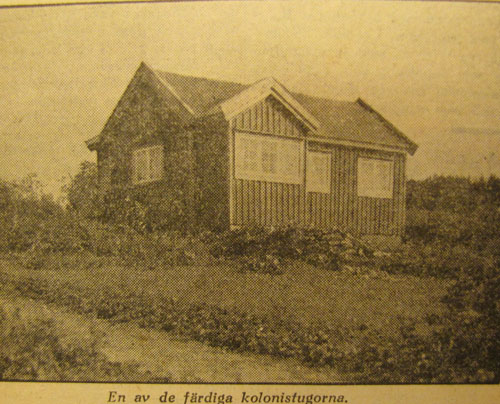 Några få kolonister ha redan flyttat in i sina stugor. Det skedde för ett par månader sedan, och de ha således fått vara med om den bästa delen av sommaren därute. En av de bebodda stugorna, som ligger i sluttningen nära vägen, tar sig riktigt ståtlig ut, hållen i mörk färg med vitmålade fönsterbågar. Den är också en av de största därute.