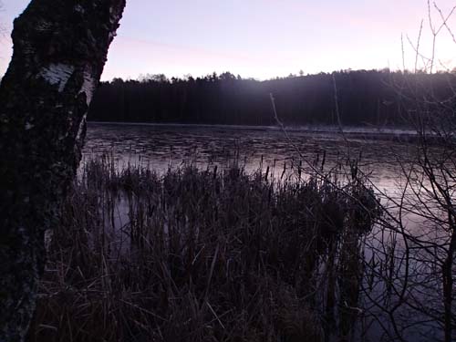 En tunn hinna av is hade lagt sig på vattenytan denna söndag. Foto: Per Hallén 2014Idag kunde jag se att de sista trollen vid milspåret har försvunnit. Foto: Per Hallén 2014Även vid Västra Långvattnet låg det is på vattnet. Foto: Per Hallén 2014Bertilssons stuga är stängd från mitten av månaden hela vägen fram till jul, där var alltså lugnt och stilla. Foto: Per Hallén 2014