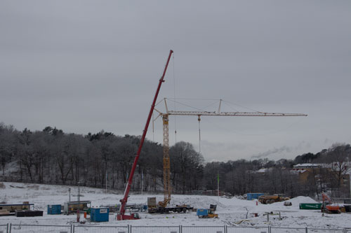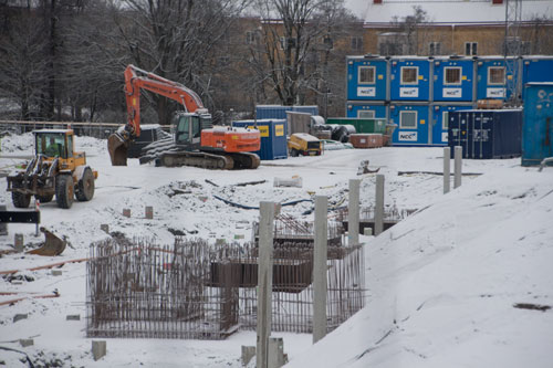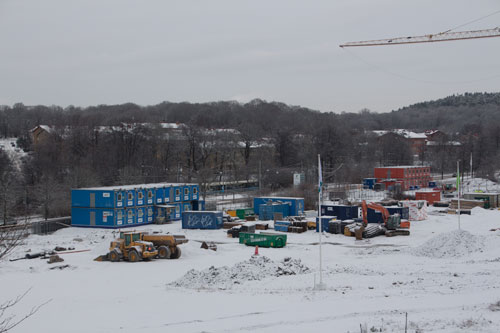 Under 2014 har jag fortlöpande fotograferat vid det nya bostadsområdet där Synvillan tidigare låg (se fler bilder via denna länk). Nu närmar sig året sitt slut och grundarbetena för två av de nya husen ser ut att ha kommit ganska långt. Det är mycket aktivitet i området och nu uppförs ett plank ut mot Delsjövägen (hur länge dröjer det innan graffitifolket kommer att ”dekorera” det?).