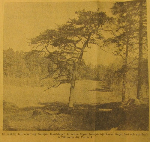 En följd av röjningen är, betonar jägmästare Svensson i detta sammanhang, att partier av området, som förut varit dolda under långa tider nu åter kan avnjutas. Det är fallet t ex på 3 hålet, där några tallar och ett bergsparti varit särskilt illa utsatta: – Denna vy har ingen kunnat se på 10 år, säger jägmästare Svensson, och förresten hade tallarna dött på hitsidan om vi inte röjt upp framför.
