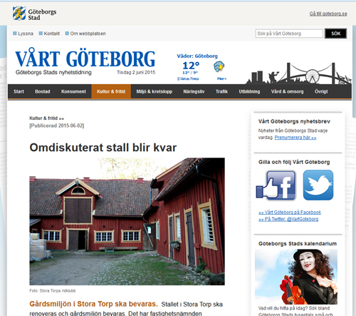 Idag publicerades ett mycket glädjande besked på nättidningen ”Vårt Göteborg”, stallet vid Stora Torp skall stå kvar enligt beslut från fastighetsnämnden i ett pressmeddelande som här återges i fulltext. Det är en glädjande och viktig nyhet för Delsjöområdet, dock kan jag inte undgå att konstatera att trots att samtliga förvaltningar fått informationsmaterial som berättar om Stora Torps historia har man ändå inte lyckats få in rätt ålder på stallbyggnaderna i pressmeddelandet….