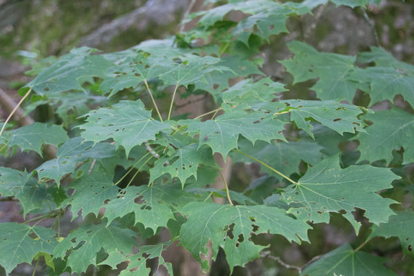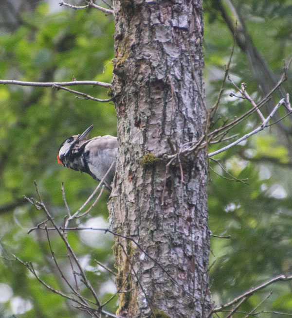 Den stora skadan på skogen gör de unga skalbaggarna som för att bli könsmogna börjar äta på friska träd. Märgborrens baggar borrar sig in i tallens årsskott och äter av skottens märg. Oftast dör skotten och ramlar av. Trädet växer dåligt och kan vid stora massangrepp bli så försvagat att det dör! Ser Du några angrepp i tallarna runt omkring? Titta efter glesa kronor eller leta efter årsskott på marken. Den större hackspetten är en av barkborrarnas fiender. Efter vinterns ändlösa hackande efter frön i gran- och tallkottar övergår hackspetten till att äta bl a barkborrar under sommaren. Hackspetten hugger som regel ett nytt bohål varje år och hjälper på så vis till att mildra bostadskrisen för andra fåglar.”