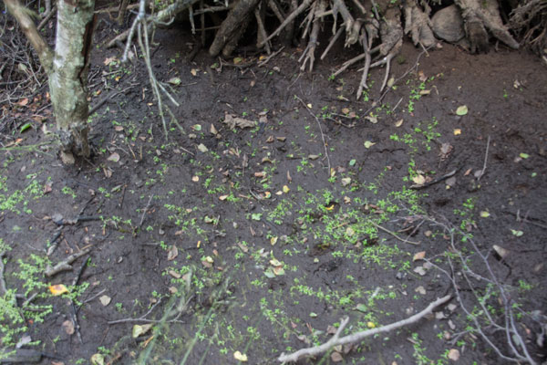 ”Har Du funderat över vart alla trädens löv tar vägen som tappas varje år? I lövskogen tas de genast om han av bl a daggmaskar och bakterier. Dessa bryter snabbt ner löven till jord och näringsämnen. I den tätplanterade granskogen har solen svårt att nå ner till marken och det blir gärna för kallt för att bakterier skall trivas. Maskarna tycker inte om de sura barren och barrskogens viktigaste nedbrytare är därför svamparna. Men de är inte på långt när så effektiva som lövskogens maskar och bakterier och så småningom kan det byggas upp ett tjockt lager av barr på marken.