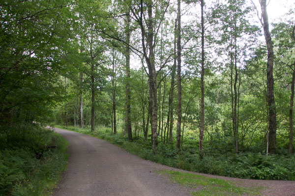 ”Till station 6. C:a 800 m. Vägen går nerför men stiger sedan stadigt uppåt och framförallt gran växer här. En bänk passeras och det blir mer eller mindre plant. Du går under en luftledning och följer hela tiden vägen rakt fram. Samtidigt skymtar Du hus till vänster. Ner i en svacka och upp igen. Kala berghällar dominerar nu. Vägen svänger i en väsntersväng. I början av svängen passeras ett litet gräsbevuxet sumpområde. Direkt efter sumpen kan du gå ut åt höger till rastbordet med den fina utsikten. C:a 80 m från sumpområdet delar sig vänstersvängen. Vid vägvalet siktar Du in dig på det svampliknande vattentornet i fjärran och tar alltså den högra vägen ner mellan hällarna mot granbeståndet. C:a 100 m senare stöter Du på en väg. Följ den 20 m till höger innan Du viker av till vänster in på stigen. Efter svackan som du just gått ner i börjar 3-4 m högt tunt ris breda ut sig på bägge sidor om vägen. Du är äntligen framme vid brakveden”.