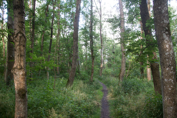 ”Till station 11. C:a 150 m. Efter fågelskylten tar Du till vänster. Passerar vassbältet på vägens vänstra sida och dyk in bakom det. I den lite fuktiga marken finns det oftast gott om bl a rådjursspår”