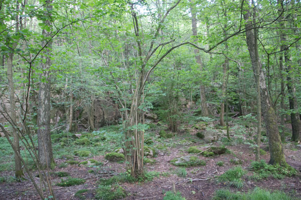 ”Till station 9. C:a 150 m. Fortsätt på stigen rakt fram. När Du dyker in bland de smalstammiga buskagen nedanför bergsbranten är du framme.”