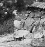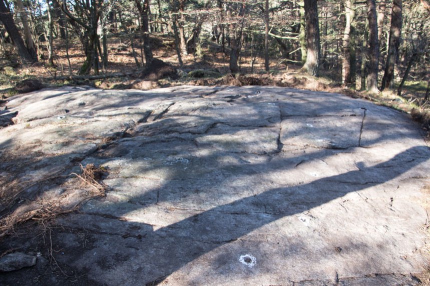 Jag har hittat en ställning förmodligen för en flaggstång, likt den på kartan. Men den finns på berget mitt emot Lyckan. Man når platsen om man går ridvägen mot Linne’s Willrunor men tar vänster i stället för att vika av mot höger från vägen som man gör för att nå runorna.