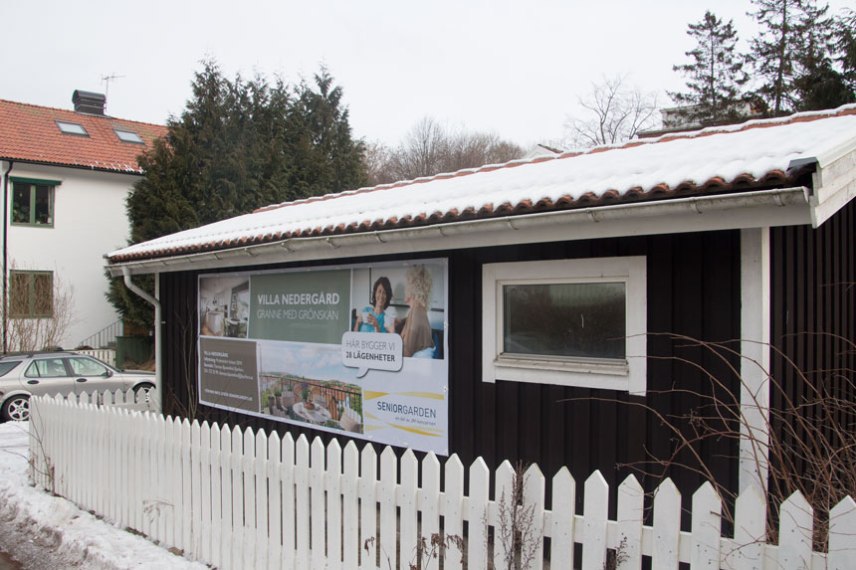 Bortanför Villa Nedergård, där det varit ett mindre parklandskap skall det uppföras fyra nya bostadshus samt en ny stor skola för ca 360 elever.