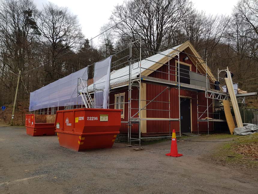Det pågår åter reparationer vid Stora Torps ekonomibyggnader. Just nu läggs nytt tak på det så kallade ”herrskapsstallet” där det sedan länge funnits en hönsgård. Denna byggnad har inte bara innehållit stall, det fanns även boningsrum vilket skorstenen vittnar om. Denna byggnad är liksom tidigare stall och före detta ladugård i behov av upprustning. Väggarna målades 2014 men taket åtgärdas alltså först i år.. Troligen är delar av denna byggnad äldre, eller åtminstone är materialet äldre, då det finns timrade delar av huset. Dessa kan vara äldre än 1850-51 då byggnaderna här i övrigt uppfördes.