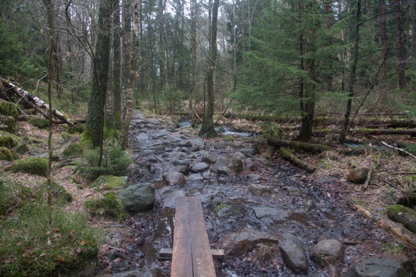 Vi samlas vid hållplatsen Kvarnfallsvägen (se länk till Västtrafik). Därifrån går vi in mot Delsjöområdets ”vildaste” del. Till en början går färden på en lättgången grusväg innan vi beger oss in på den mindre röd-vita stigen.