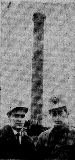 ”På rekordtid har Göteborgs Industribyggnader uppfört ett TV-torn i betong på Brudaremossen i Göteborg. Tornet blev färdigt i går och det betyder att det på 30 cm när 72 meter höga betongpelaren gjutits på 23 dygn. Men så har 27 mannar och arbetsledare jobbat i treskift och betongblandarna har praktiskt tagit inte stått stilla.