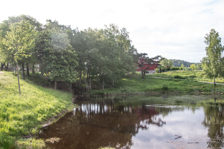 Våren 2018 höll jag i en guidad vandring för Svenska Turistföreningens lokalavdelning Lerum-Partille och kom då att samtala med Anders Boström vars barn för ett antal år sedan hittat stora stenar som visade sig vara resterna av en fördämning. Vi träffades åter några dagar efter vandringen för att se på lämningarna samt andra spår i landskapet, som vi skall återkomma till vid ett senare tillfälle.