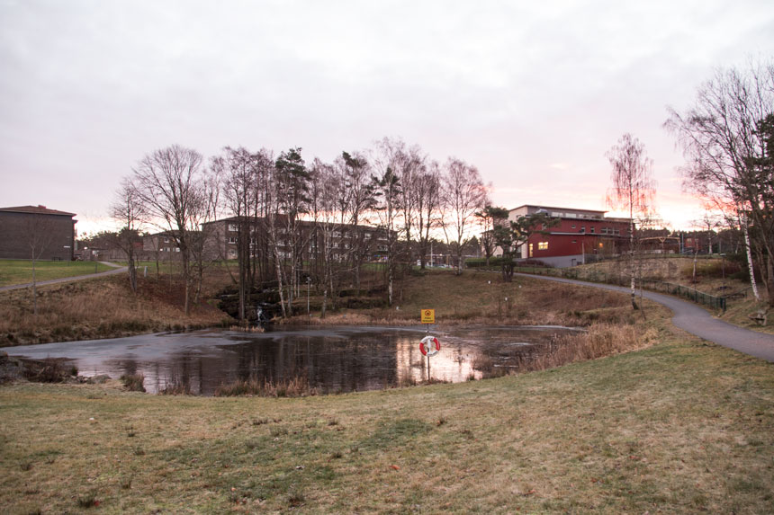 Det är lätt att förväxla vattenfallen.För några år sedan föreslog jag att kommunen skulle ordna en belysning av Kvarnfallet. Det blev ingen där, men man satte upp åtskilliga strålkastare mot vattnet och mot trädkronorna i skogsbacken vid vattenfallen vid Oxledskolan. Inget fel med det, det blev vackert, men det är fortfarande kolmörkt vid Kvarnfallet på kvällarna.