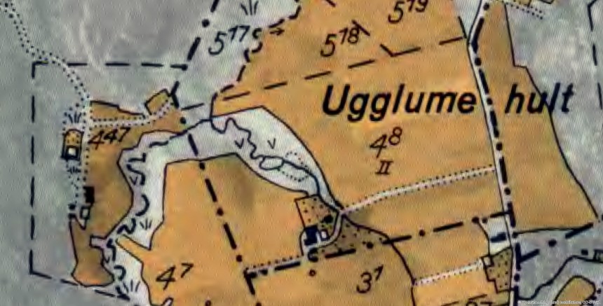 På de skifteskartor som upprättades över först utmarken 1849[3] och därefter över Ugglums by 1860[4] finns vid en första anblick inte några spår av någon kvarn vid bäcken.