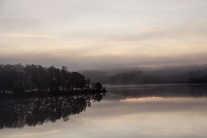 Redan innan solen gått upp påbörjades dagens vandring i Delsjöområdet. Det var dimmor som låg över sjöar och tjärnar och skapade lite höstkänsla. Dessutom var belysningsstolparna vid Svarttjärn släckta och gav möjlighet att slippa konstgjort ljus under det första hundratalet meter på vandringen, som därefter gick in på småstigar bort mot Delsjöarna. Området är mycket vackert under alla årstider något jag tycker tydligt visas i dagens bildspel.
