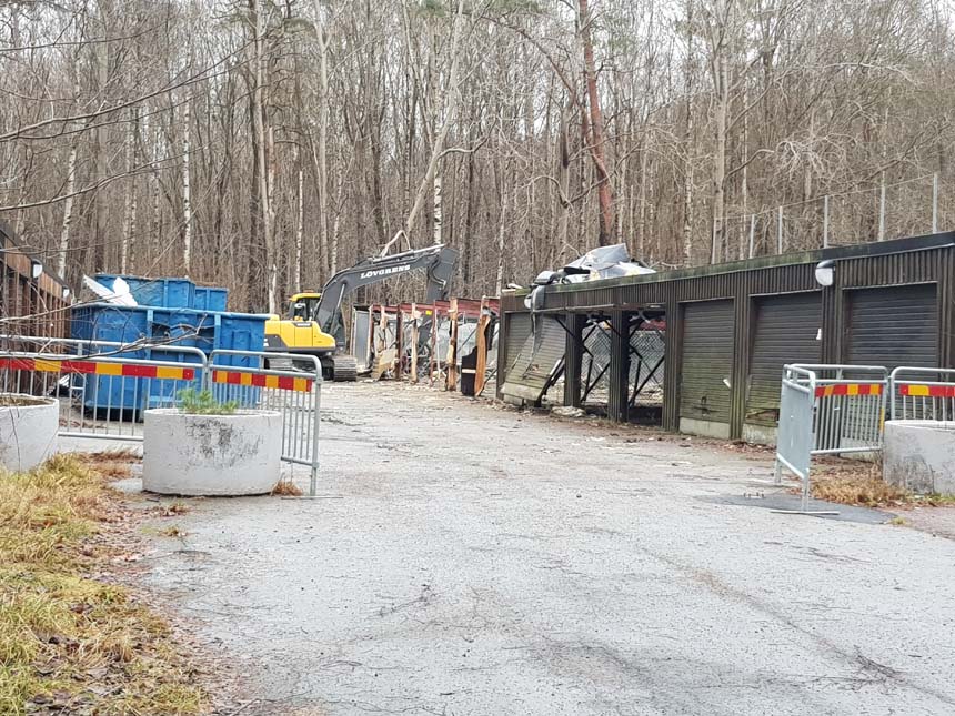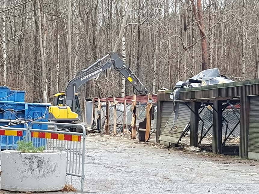 Nu har rivningen av garagen invid grusplanen vid Härlanda tjärn inletts. Dessutom har det satts upp markeringar för den tomt där den nya skolan skall byggas. Större delen av skolan kommer inte att stå på den nuvarande grusplanen utan i det som idag är skogsmark, för drygt 10 år sedan tänkt att bli naturreservat men det fanns inget hot mot området så skydd var inte nödvändigt, så argumenterade företrädarna för Göteborg den gången. Nu har alltså första steget mot att exploatera området tagits.