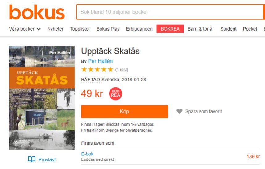 Boken ”Upptäck Skatås” är med på årets bokrea, bland nätbokhandlarna så är det bokus som säljer boken till dig – för endast 49 kronor, långt billigare än e-boksversionen. Har du inte ännu skaffat dig ett exemplar så är det läge just nu, billigare blir det knappast! Länk till bokus.