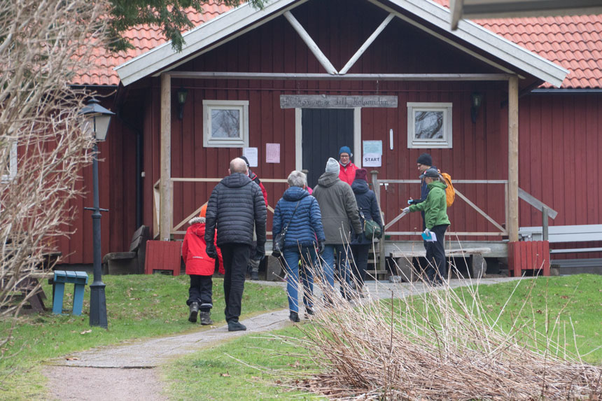 Trots att det var en gråmulen söndag med ganska hårda vindar kom det ändå ganska många besökare. Normalt brukar omkring 100 personer vara med, ibland närmare 200, men det beror givetvis på vädret och hur många andra poängpromenader som andra föreningar anordnar runt om i staden med omland.