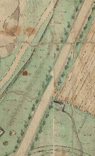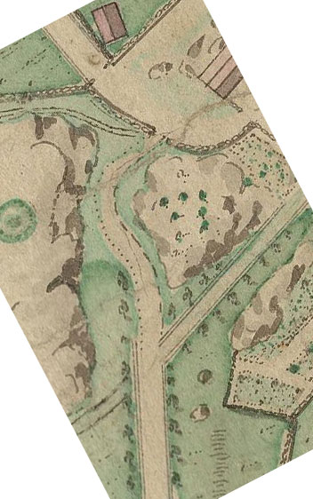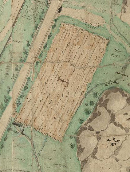 På kartan från 1796 syns en stig som avslutas med en halvcirkel. Senare har en förlängning av stigen ritats in och där går ännu i dag en stig snett upp mot Apslätten. På kartan finns även en stenmur inritad. Grundstenarna till den muren finns också kvar på platsen i dag. Kartan avbildar även denna lilla detalj på ett mycket exakt.