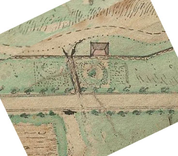 Invid fägatan finns på kartan en markering för en byggnad. Vad detta hus användes till framgår inte av kartan men det ser ut att ligga en mindre trädgård invid huset. Kanske var detta någon form av grindstuga för gården utmed vägen från utmarken och Kärralund, men det kan lika gärna vara någon annan form av byggnad eller till och med något som tillhörde parken i form av ett lusthus.