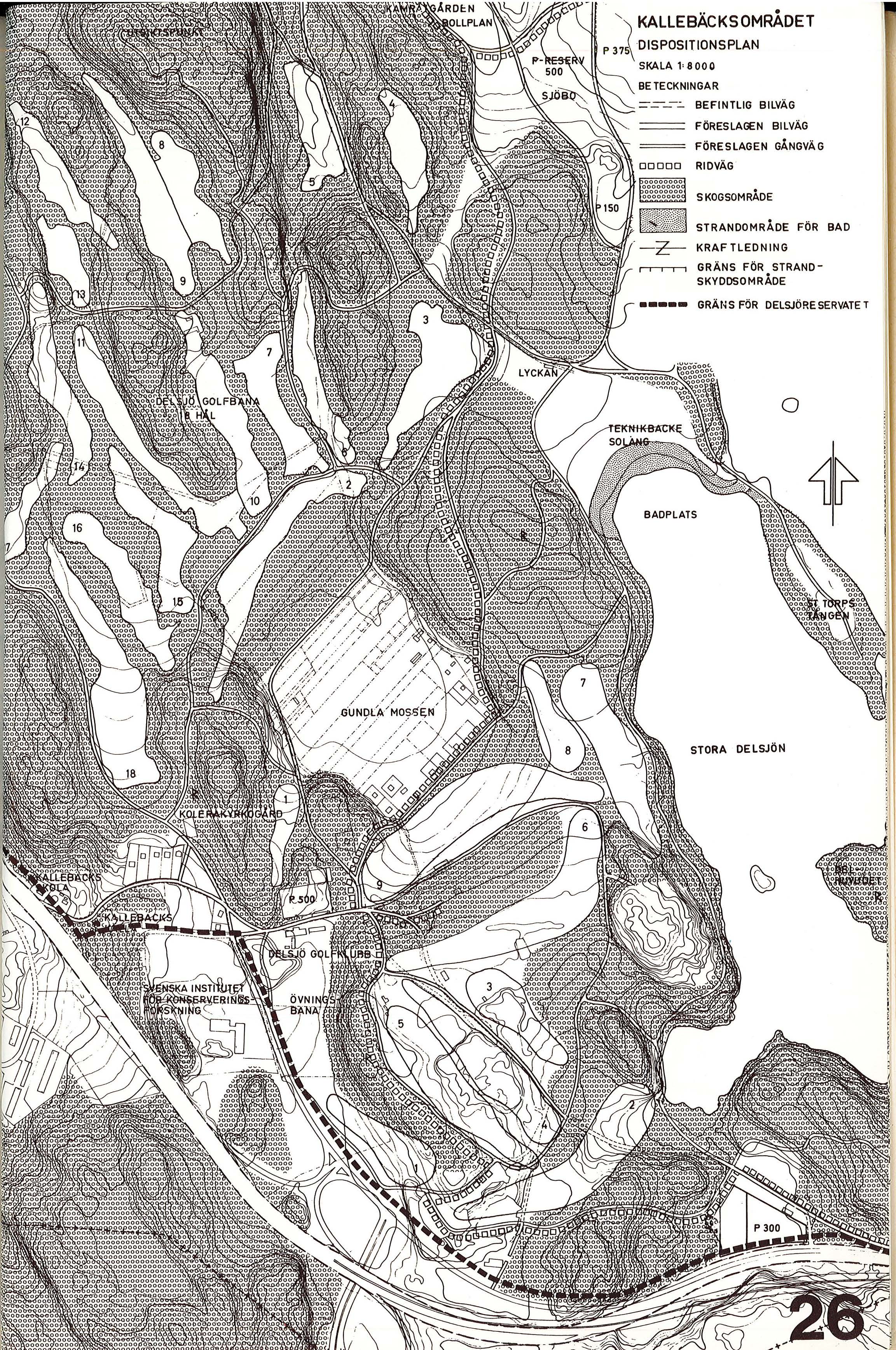 ”Dispositionsskissen avser visa den aktuella utformningen av trafiklösningen för riksväg 40 vid Kallebäcksmotet och de förutsättningar som denna skapar för områdets utnyttjande. I områdets norra del har Inlagts den befintliga 18-hålsbanan, och i den södra delen den skiss till ny 9-hålsbana, som golfklubben ställt till förfogande. Den torde i första hand böra uppfattas som ett stöd för de markanspråk som klubben ställer – mindre som ett definitivt förslag till utformning. Vid den överarbetning, som vid beslut att bygga ut banan, måste komma till stånd bör bland annat följande beaktas: