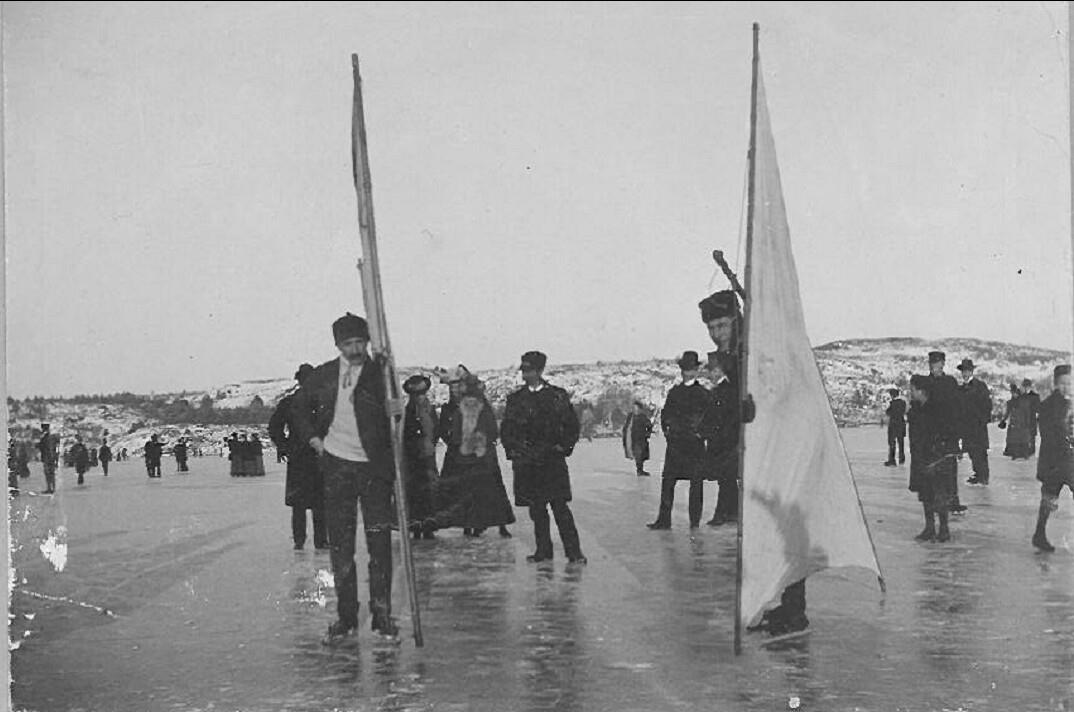 ”På Delsjön rådde i går ett friskt idrottslif, ehuruväl antalet deltagare icke var så stort som man kunnat antaga. Troligen hade tvifvel om isens lämplighet afskräckt från att gå dit, men isen var af utmärkt beskaffenhet, och den friska brisen var särdeles gynsam för den idrott, som för tillfället var den dominerande, nämligen segling på isjakt och skridsko.