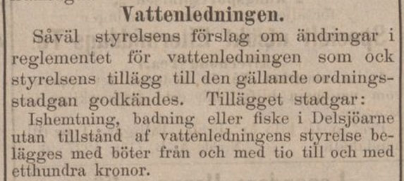 ”Huru länge skall oefterrättlighetstillståndet vid Delsjön, hvarifrån en stor del af Göteborgs vattenledningsvatten kommer, få fortfara?