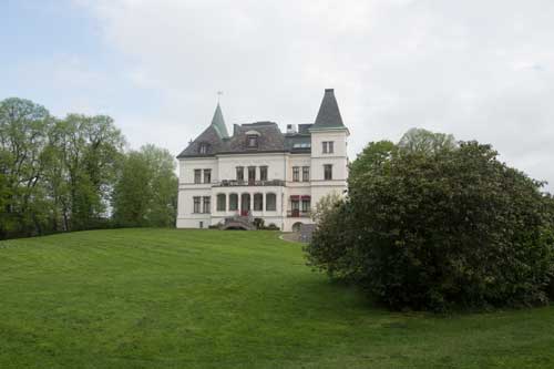 Vid en promenad i det vackra skogspartiet mellan det ståtliga slottet och Delsjön är det lätt att märka en regimförändring. Här och var vittna uppstaplade vedtravar om att Skogssällskapet redan gripit sig an med sin förvaltningsuppgift. Det låter kanske oroväckande för de många som haft sin glädje i att vandra omkring i detta stycke orörd urskog, men när man ser vad som skett och håller på att ske förstår man att skogen kommit i goda händer. Och än bättre begriper lekmannen det när han ute i markerna träffar på jägmästare Wigelius på inspektionstur och får en aning om programmet. Han och hans mannar ha här ingalunda det ekonomiska utbytet som det allt överskuggande målet. Det finns ingen anledning att låta yxan vila, när den kan uträtta åtskilligt som är ägnat att ändå bättre framhäva parkkaraktären samtidigt som en hel del värdefullt bränsle utvinnes. En omfattande gallring behövs här för att få bort fula och rötangripna träd och för att få de vackra partierna att framträda.
