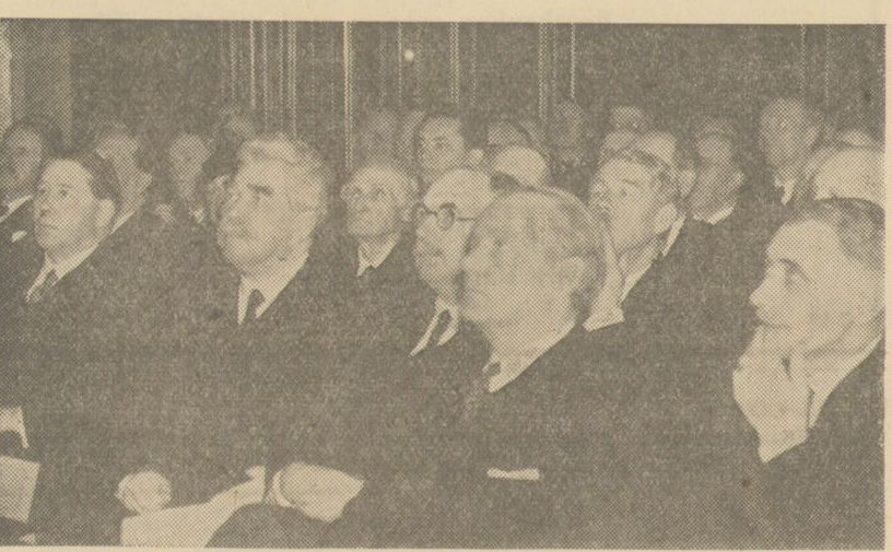 De sju landshövdingarna, som vid invigningen i går voro samlade i gamla slottet, voro hrr Jacobsson, Hsselrot, Beskow, Lundvik, Lindeberg, Mannerflet och von Sneidern, och samtliga tillsammans med statsråden Barmstorp och Domö uttryckte vederbörligen sin beundran inför lokalernas utformning och utsmyckning, däri instämmande i de berömmande ord skogshögskolans rektor professor Lundberg fällde, när han före invigningen fick tillfälle att studera detaljerna.