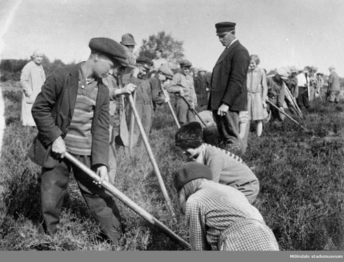 ”Från och med 1600-talets början utsätts skogen i sydvästra Sverige för en omfattande rovdrift. Efter flera hundra år av skogsskövling bredde istället milsvida ljunghedar ut sig i landskapet. Så småningom började röster höjas för att beskoga det kala landskapet – men inte förrän i början av detta seklet tog fart. Huvudsakligen gran planterades. När Skogssällskapet tog över skötseln av Delsjöområdet 1921 fanns det faktiskt ett gott bestånd av blandskog (fr a ek och bok) i Stora Torps närhet. Men i det omgivande landskapet bredde ljunghedarna ut sig och i dessa planterade Skogssällskapet 5 miljoner plantor under de följande femtio åren. Till sin ”hjälp” hade man bl a folkskollärare Gustav Svenssons skolklasser – främst sjätteklassare. Initiativet var gott men med resultatet var det sämre bevänt och effektiviteten sjönk så småningom till urdåliga 6 plantor per elev och dag! Enligt källa ägnades mesta tiden istället åt att ”göra fällor och bus med lärarna”. På trettio år hade eleverna bara planterat 33 hektar och verksamheten lades ner.”