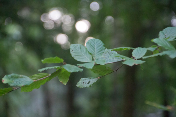”Om Du studerar bokens grenar upptäcker Du att bladen sitter i två rader. Dessutom står bladen vågrätt ut från varje kvist – allt för att samla så mycket ljus som möjligt. Tillsammans bildar alla kvistars löv ett effektivt Ijussamlande paraply. Den lilla mängd ljus som eventuellt slinker förbi ”klorofyllfällan” är otillräcklig för de flesta växter och marken i sommarens bokskog är därför i det närmaste tom på blommor.