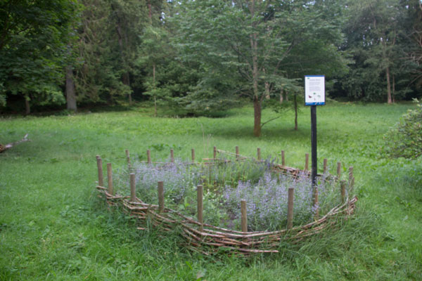 ”Strax öster om tillbyggnaden kommer Skogssällskapet under 1988 att anlägga ett arboretum innehållande Sveriges vanligaste buskar och träd. En blomsteräng kommer också att placeras i denna omgivning. Den gamla slottsparken anlades redan 1770 men tyvärr börjar nu flera träd se ”ålderströtta” ut.” Arboretum anläggningen finns kvar även sedan Skogssällskapet flyttat.