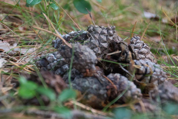 ”Avslitna kottefjäll och fransiga kotteaxlar – alltihop utspritt i stora mängder under ett träd – det finns all anledning att misstänka ekorre som ansvarig för ”nedskräpningen”. För ekorren är kottarnas frön en mycket viktig näringskälla fr a på vintern. Men fröna är små och det går åt en hel del kottar för att ekorren skall bli mätt. Skogsmusens kottegnag ser nästan likadant ut som ekorrens men är mycket jämnare avgnaget. Dessutom hittas skogsmusens kottar ofta på undangömda platser till skillnad från ekorrens som gärna ligger öppet. Ibland kan man hitta träd med en eller flera tufsiga kottar inkilade i barken. Ligger det dessutom en massa kottar med ett lika tufsigt utseende under trädet så har Du funnit en s k hackspettsmedja. Större hackspett lever vintertid till stor del av barrträdsfrö. Efter fyra minuters behandling är en tallkottes från omsorgsfullt utplockade. Spetten har då hackat ungefär 800 gånger i kotten.”