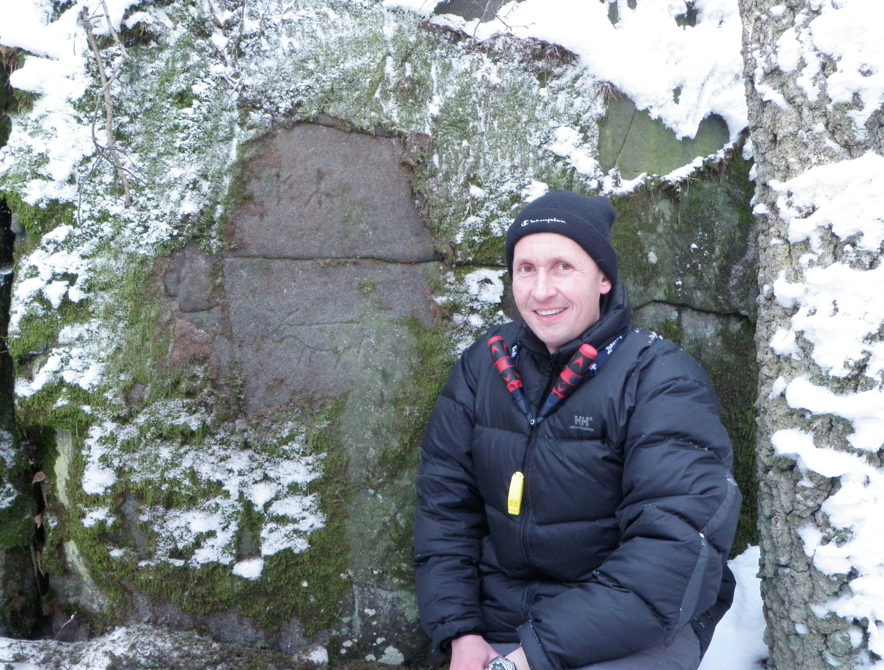 HT fort till platsen och fotograferade ristningarna. Överlärare J Alin, runexpert, fick se bilden och blev ganska skeptisk. De två runorna fann han vara f och r och tillhöra ett yngre runalfabet. Möjligen kan runorna vara någon slags besvärjelse eller trollformel, säger Alin och tillägger: Annars har vi ju exempel på att folk roat sig med att rista runor av olika anledningar… Våra hällristningar äro gjorda med rundade skåror, medan dessa äro spetsiga. Figurens ben ser dessutom lite misstänkta ut. Man brukade inte rita djur med spetsiga ben, och i all synnerhet göra bakbenens avslutning ett konstigt intryck.
