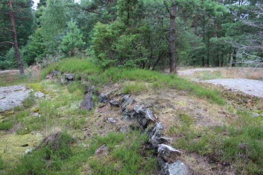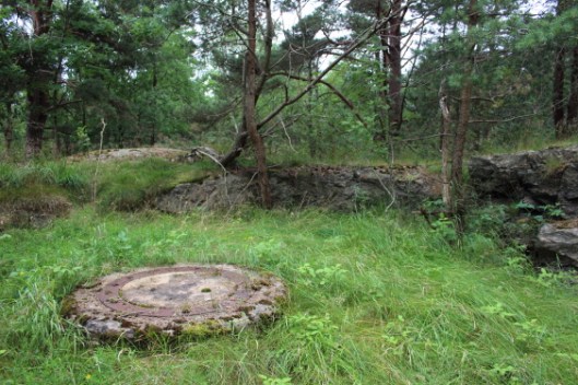 När man når toppen av berget ser man flera stora ”kullar”, man skulle lätt kunna tro att det är gravhögar från järnåldern – men det är igenfyllda och övervuxna bunkrar.