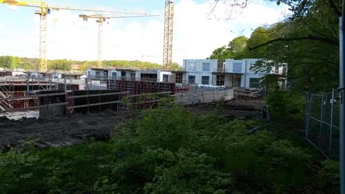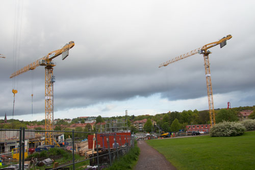 Den 23 maj märktes det att förändringen av området nu går allt snabbare. Delvis är nu en andra våning uppförd på HSB:s hus och det har tillkommit en femte stor byggkran närmare Delsjövägen.