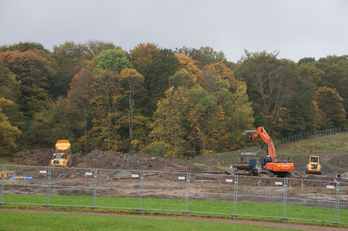 Invid Delsjövägen har NCC under den gångna veckan arbetat med att anlägga ett område där troligen byggbarackerna skall ställas upp. Dit har också vatten, avlopp och el dragits fram.