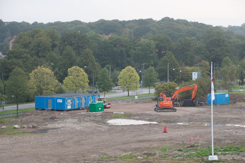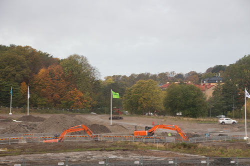 Den 10 oktober, ett besök under en vanliga arbetsdag för att fånga lite aktivitet inom området. Under de senaste dagarna har ännu ett byggbolag anlänt till området, PEAB, som skall uppföra HSB:s 155 lägenheter, de har nu satt upp byggbodar och inlett arbetet där det två första av HSB:s hus.