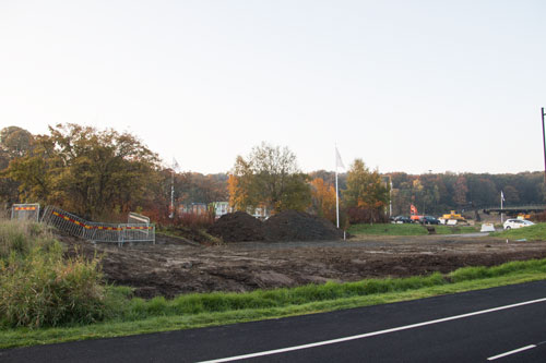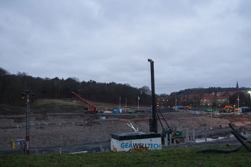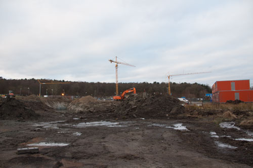 Den 7 november, idag blev det åter en promenad kring byggarbetsplatsen för en uppdatering av bildmaterialet. Nu börjar det att synas lite mer av den kommande bebyggelsen är pålarna är på väg ned i marken.