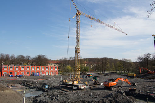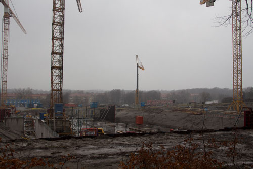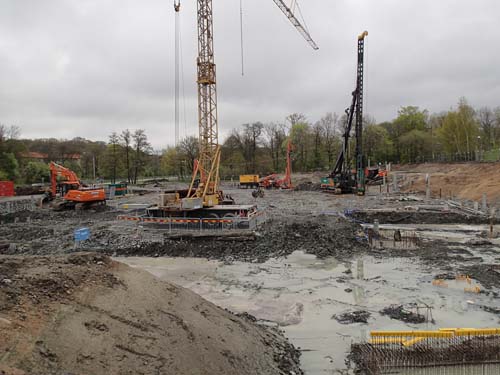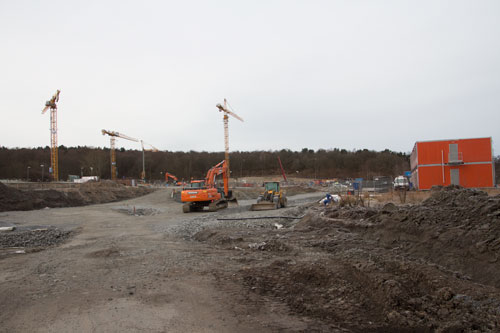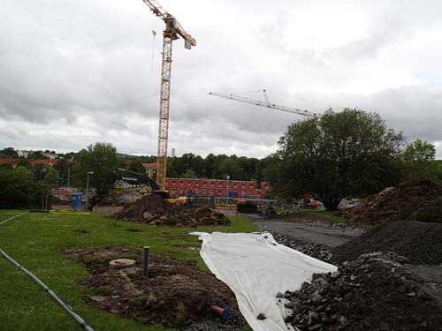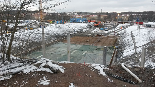 Bygget fortsätter med grundarbetena för de två hus som uppförs för NCC och HSB. Ännu syns inga tecken på att Skanska skulle påbörja sina hus.