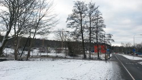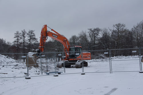 Den 23 januari 2015 har byggarbetsplatsen förändrats något jämfört med årsskiftet. Området i riktning mot Lilla Torps allé och Storatorpsvägen håller idag på att inhägnas. Dagens bilder är tagna med mobilkamera: