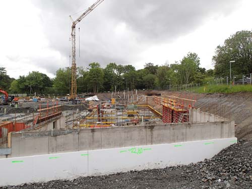 Även i den andra etappen närmare Delsjövägen hade arbetet med källaren gått vidare i den blöta gropen.