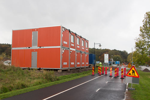 Det visade sig vara riktigt, det jag misstänkte förra veckan, nämligen att det skulle placeras ut arbetsbodar på den platås som lagts ut invid Delsjövägen.